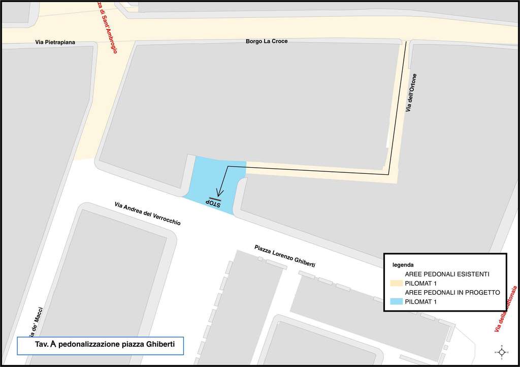 “La delibera approvata nell’ultima seduta istituisce sì una nuova area pedonale ma si tratta semplicemente della piccola resede di piazza Ghiberti dove confluisce via dell’Ortone, quest’ultima già inserita nell’area pedonale Borgo La Croce-via Pietrapiana controllata dal pilomat. Di fatto questa porzione di piazza viene inglobata dalla vicina area pedonale. Ma questo non accade con la direttrice di collegamento tra via della Mattonaia e via del Verrocchio che rappresenta il confine della zona pedonalizzata ma non ne fa parte. Evidentemente questo particolare, peraltro non secondario, non è stato ben compreso. Anche se, allegata alla delibera, c’è una carta abbastanza esplicativa”. Per quanto riguarda la sosta, l’assessore precisa che in questa porzione di piazza il parcheggio era già vietato ai veicoli e che l’unica sosta consentita è quella delle biciclette per le quali sono presenti alcune rastrelliere.