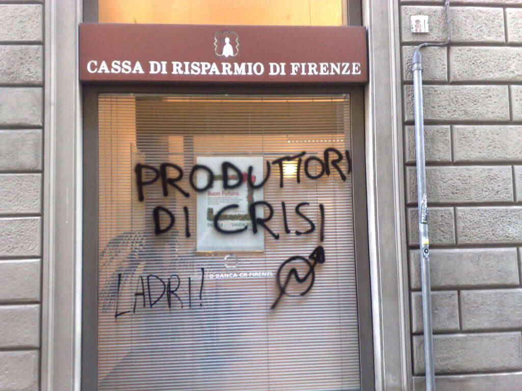 “Una compassione che si trasforma in rabbia quando lor signori buttano per terra i cassonetti e imbrattano tutte le vetrate di una banca, sportelli bancomat compresi, come è accaduto in via dei Servi – ha aggiunto Cellai –. Da rimanere allibiti al vedere come hanno ridotto la banca nonostante la nutrita presenza delle Forze dell’Ordine in cima e in fondo al gruppo dei manifestanti.