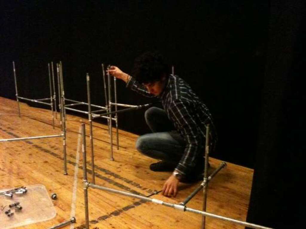Foto degli studenti del ‘Laboratorio di progettazione architettonica 3’ del professor Pierfilippo Checchi che lavorano alle scenografie