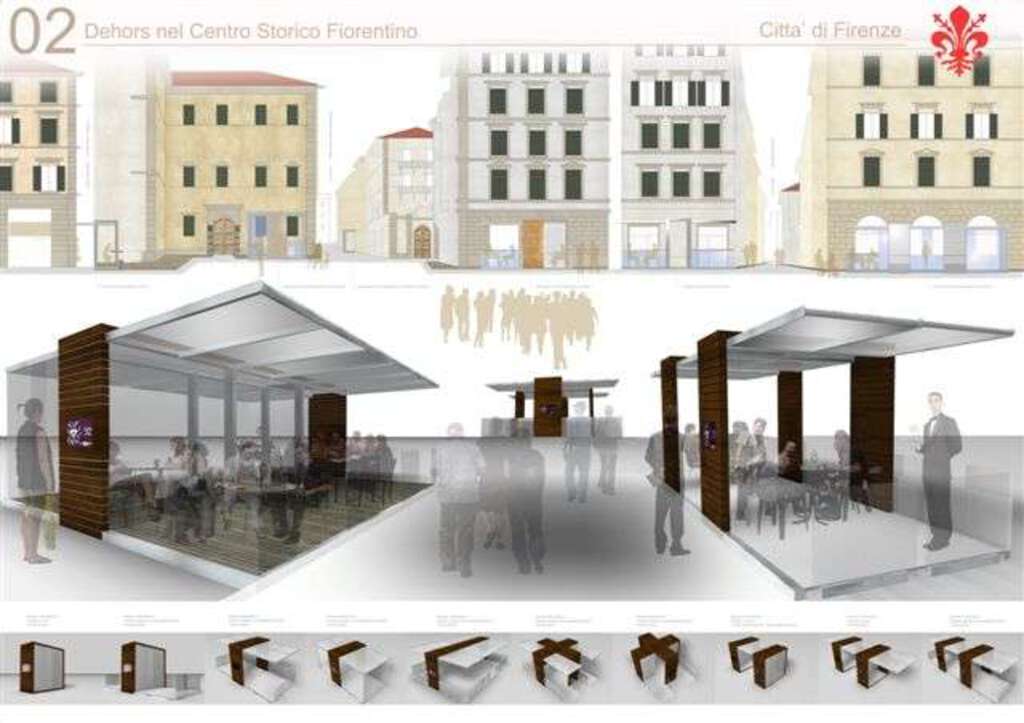 Alla fine, anche se i premi sono stati formalmente assegnati, la giuria ha deciso di non proclamare un ‘prototipo’ realmente vincitore, poichè “nessuno dei progetti presentati, pur nella varietà esaminata, può essere considerato univocamente esaustivo del tema messo a concorso” ha spiegato la commissione. I progetti prescelti sono stati sei, e tutti e sei concorreranno a definire il modello generale, che sarà formalizzato entro febbraio e al quale da novembre tutti gli operatori dovranno attenersi, per rinnovare o realizzare dehor con caratteristiche comuni di forme, colori e materiali. Alla scelta del prototipo definitivo fra pochi giorni potranno partecipare tutti i fiorentini, attraverso una consultazione on line sulla rete civica del Comune che pubblicherà e metterà a confronto i sei progetti, che sono quelli del gruppo di Michele Principe e di Giuseppe Mincoletti (primi ex aequo) e poi di Elisabetta Grassi, Manfredi Conforzi, Luca Salvalai e Vincenzo Bellini.