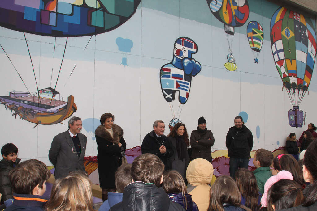 Il murale, caratterizzato da mongolfiere con i colori delle bandiere dei paesi dei cinque continenti, è stato studiato per lo spazio urbano nel quale si inserisce e tiene conto che il quartiere è un luogo di permanenza e passaggio di bambini e cittadini di tante nazionalità.