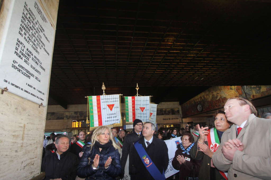 Subito dopo il momento culminate della cerimonia: al binario 6, alla stazione di Santa Maria Novella, è stata scoperta una lapide per ricordare quella pagina di storia.