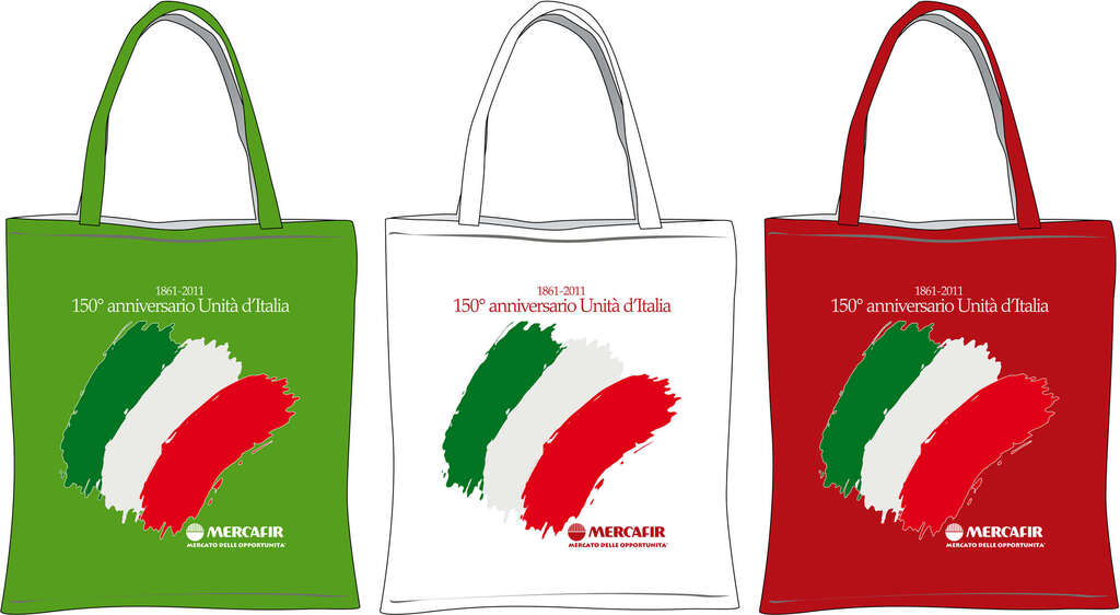 Una borsa per la spesa tricolore per il 150° anniversario dell'Unità d'Italia