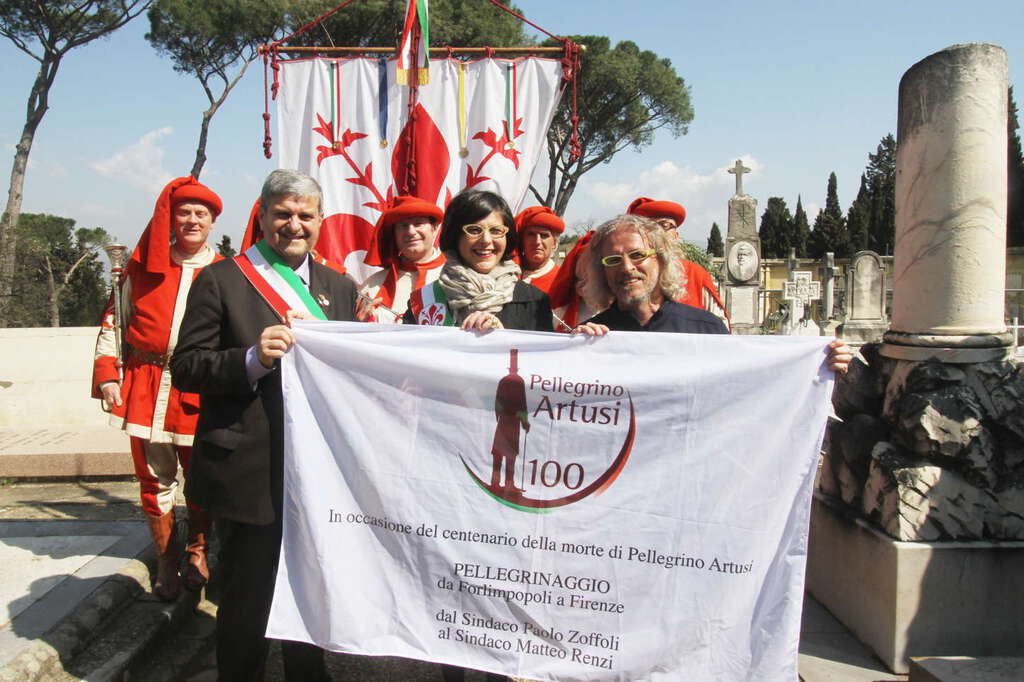 Alla cerimonia erano presenti anche gli undici giornalisti, capitanati da Leonardo Romanelli, che hanno preso parte al “Pellegrinaggio Artusiano”, ovvero la “passeggiata” Forlimpoli-Firenze partita dalla città romagnola il 26 marzo e arrivata questa mattina, giorno della scomparsa di Artusi, a Firenze.