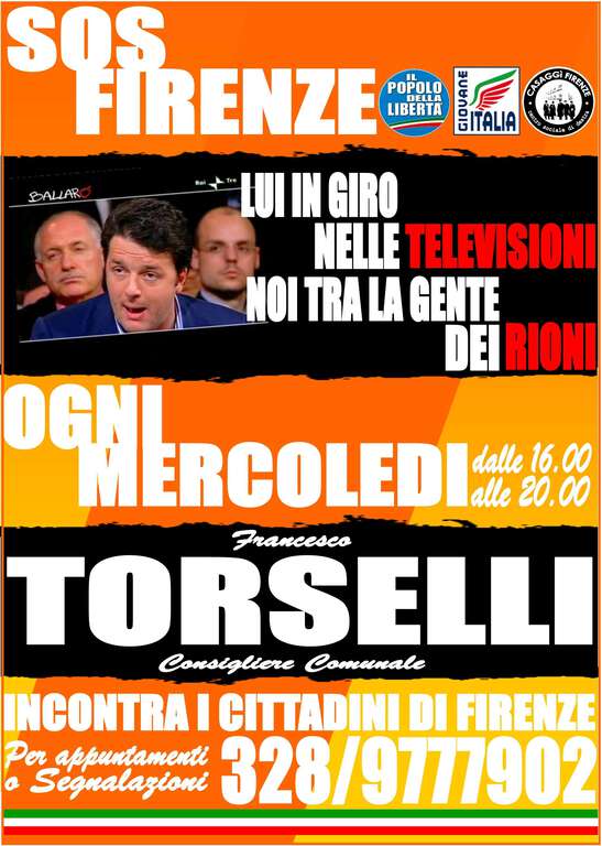 "Lui in giro per le televisioni, noi tra la gente dei rioni". Oggi il PdL incontra commercianti e artigiani di piazza Pitti e dintorni