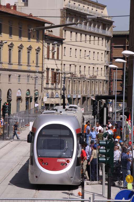 Ad attendere il tram a Santa Maria Novella il vicesindaco, il presidente del Quartiere 1 e molti cittadini che hanno potuto visitare il convoglio nel suo aspetto finale, ovvero quello che effettuerà il servizio di linea. Le sue dimensioni sono: lunghezza 32 metri (articolato in cinque moduli collegati permanentemente), larghezza 2,40 (lo standard italiano), altezza 3,40 metri (senza pantografo). I posti a sedere sono 42 cui vanno aggiunti i 4 posti per disabili su sedia a ruote , il doppio rispetto agli altri tram italiani. Altra particolarità del tram fiorentino, realizzato da AnsandoBreda, è il colore: rosso e alluminio.