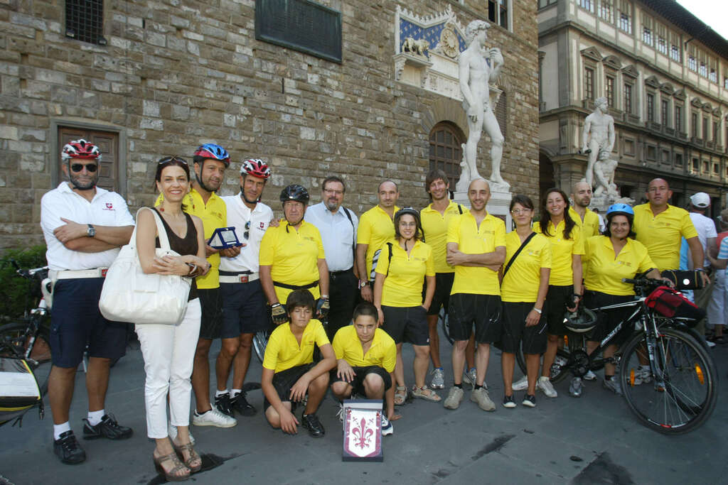 Maglietta gialla, pantaloncini rigorosamente imbottiti e caschetti d’ordinanza. Sono i ciclisti dell’associazione “Tandem di Pace” che questa mattina hanno fatto tappa a Firenze prima di partire alla volta di Berlino. A fare gli onori di casa e a porgere i saluti dell’Amministrazione comunale l’assessore allo sport Barbara Cavandoli. “L’iniziativa organizzata dal Tandem di pace rappresenta una importante testimonianza della volontà di dire no alla guerra e alla violenza – dichiara l’assessore Cavaldoni –. I ciclisti raggiungeranno infatti Berlino nel ventennale della caduta del muro, e nel loro viaggio incontreranno varie amministrazioni, associazioni e gruppi in uno scambio di esperienze sicuramente positivo e di grande valore. Per questo, a nome dell’Amministrazione e della città, faccio loro gli auguri per questo viaggio all’insegna della pace e della solidarietà”.