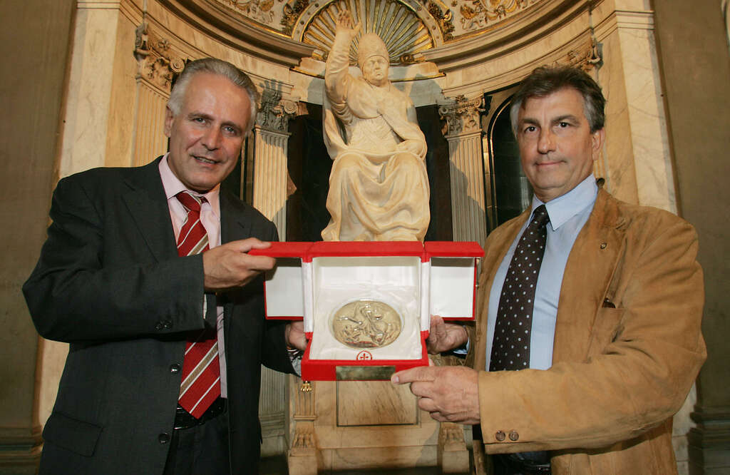 Il presidente del consiglio Giani consegna all'Istituto San Martino il calco in argento per la riproduzione degli "Scudi"