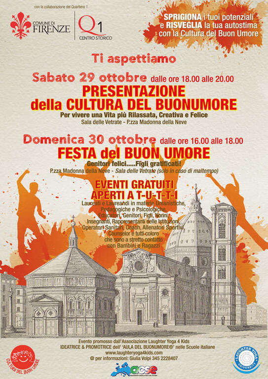 Presentazione della Cultura del Buon Umore sabato 29 ottobre 2016 ore 18:00-20:00 Sala delle Vetrate in p.za Madonna della Neve.