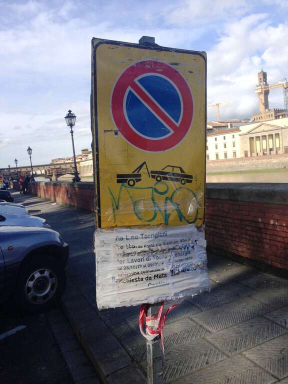 “E' da oltre un meseche vige un inutile divieto di sosta sul lungarno Torrigiani che impedisce (almeno finora) senza senso alcuno il parcheggio su entrambi i lati. La misura è stata emessa la Determina Comunale n° 2013/M/07303 per consentire alla ditta incaricata dei lavori di avviare un cantiere. Per il cittadino normale - che si chiede perché mai una zona carente di parcheggi viene privata di almeno 50 posti - scoprire di più non è neppure facile vista la pessima leggibilità degli avvisi (vedi foto allegata). Va fatto notare anche il lasso di tempo fin troppo ampio (dal 28/10/2013 fino al 09/01/2014) che è stato concesso senza che ve ne fosse, a quanto pare, una reale necessità.