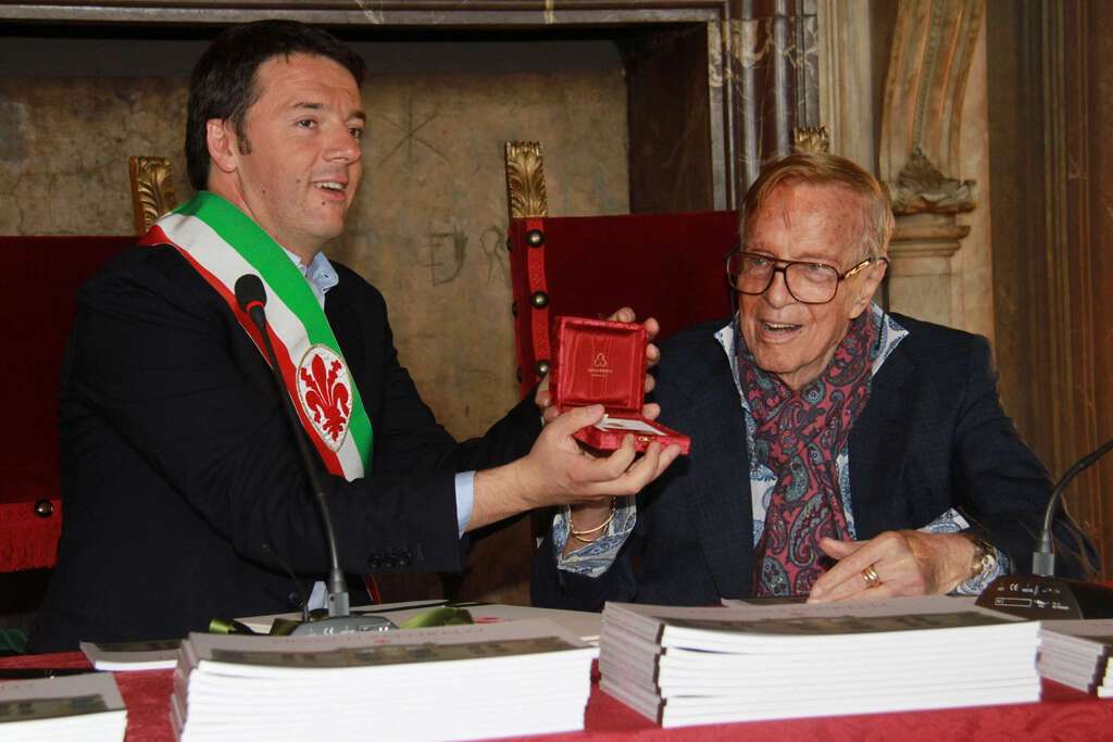Fiorino d’oro per il maestro Franco Zeffirelli: lo ha consegnato a sorpresa il sindaco Matteo Renzi al maestro, a Palazzo Vecchio per la presentazione del progetto del suo Centro Internazionale per le Arti dello Spettacolo che troverà ‘casa’ nella Galleria Rinaldo Carnielo.
