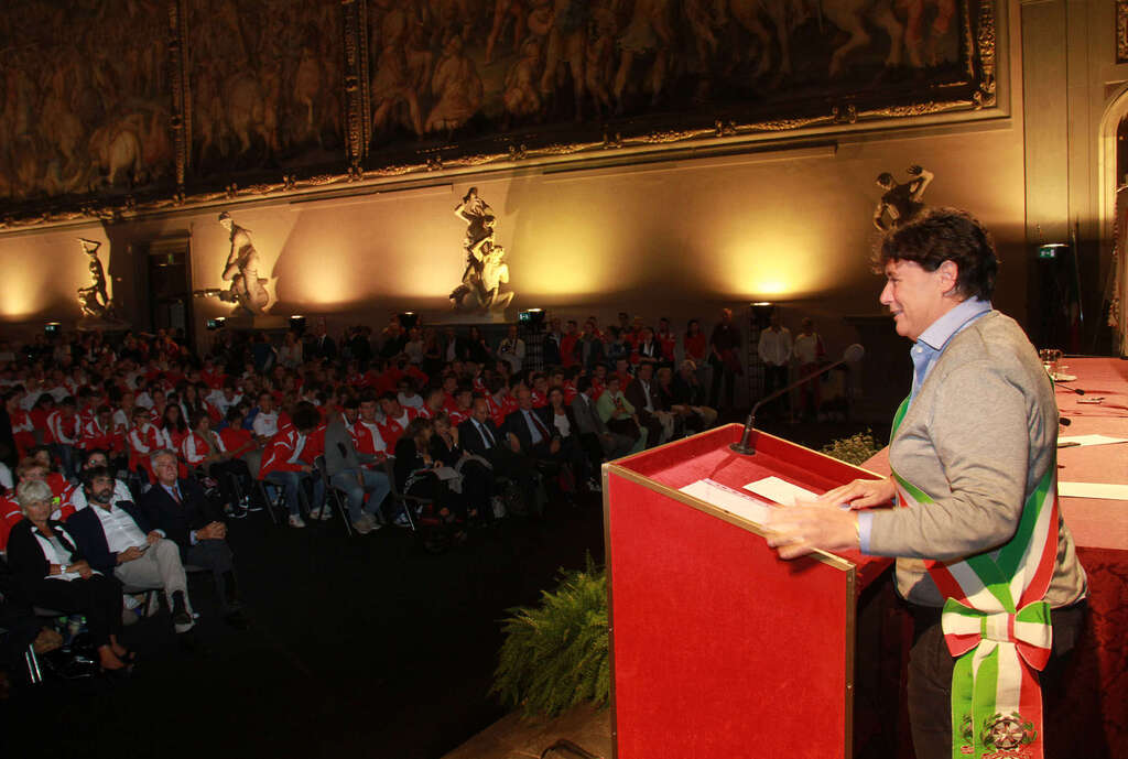 “Brunelleschi quando progettò il Duomo, fra lo scetticismo generale dimostrò passione per le proprie idee, capacità e determinazione, volontà di non mollare mai. Questo deve essere l’esempio che vi deve accompagnare nel vostro cammino sportivo in vasca e anche fuori”. Ha usato un riferimento storico il sindaco Matteo Renzi nel suo intervento di saluto nel Salone dei Cinquecento di Palazzo Vecchio gremito, nel corso del tradizionale appuntamento con la presentazione della stagione agonistica della Rari Nantes Florentia. Alla cerimonia hanno partecipato anche la vicesindaco e assessore allo sport Stefania Saccardi, l’assessore all’urbanistica Elisabetta Meucci, il presidente della Fin Paolo Barelli, il delegato provinciale del Coni Eugenio Giani, la segretaria dell’Autorità di Bacino Gaia Checcucci, il presidente della società biancorossa Andrea Pieri e Leonardo Bassilichi, amministratore delegato di Bassilichi Spa che quest’anno ha legato il proprio nome alla Rari Nantes Florentia in qualità di sponsor ufficiale.