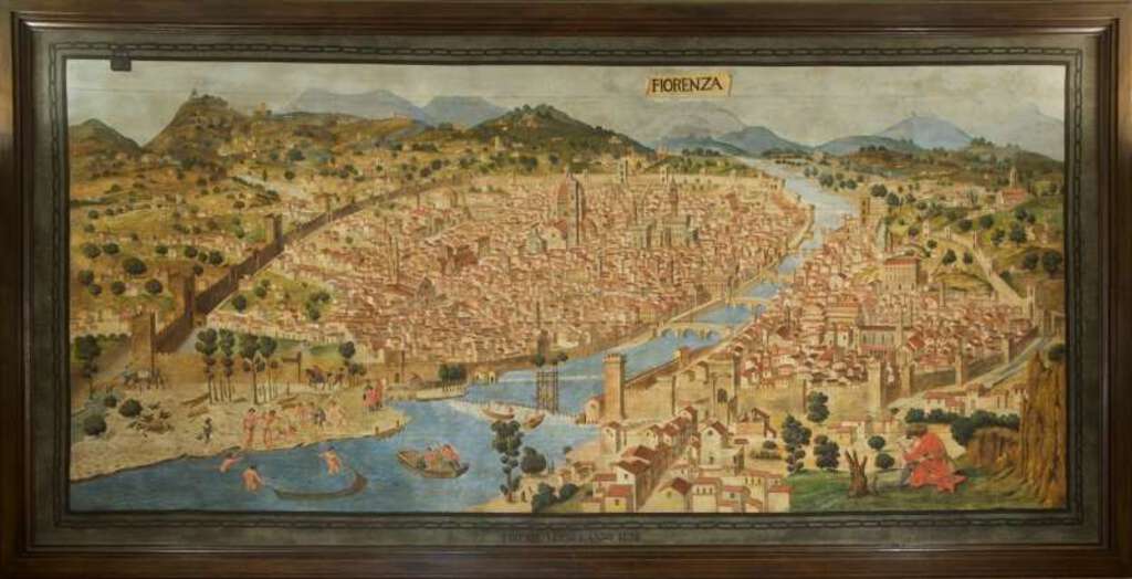 Nella sezione permanente vengono ripercorse le tappe fondamentali dell’evoluzione di Firenze dal tardo Medioevo al Novecento. Il visitatore è accolto dagli antichi mazzi di chiavi di tre porte dell’ultima cerchia muraria della città e da due capisaldi dell’iconografia fiorentina: la riproduzione pittorica ottocentesca della celebre xilografia degli anni Settanta del Quattrocento detta Veduta della Catena, e la versione del 1594 della pianta prospettica di Stefano Bonsignori, nota per la precisione della raffigurazione topografica. Il percorso prosegue con l’apertura di ‘finestre’ su scorci e vedute particolari della città, tra cui un pregevole dipinto seicentesco di Livio Mehus, le vedute fluviali settecentesche di Paolo Anesi e Thomas Patch e quelle ottocentesche di Emilio Burci e Lorenzo Gelati. Si prosegue con una selezione delle famose stampe settecentesche di Giuseppe Zocchi che mostrano alcune delle principali piazze cittadine, e con angoli della Firenze ottocentesca di Giovanni Signorini. Il vecchio centro è rievocato da un gruppo di piccole tavole di Augusto Marrani che raffigurano i caratteristici vicoli dell’antico quartiere scomparsi nell’ambito delle travagliate trasformazioni urbanistiche dell’Ottocento, qui documentate dai disegni di uno dei progetti di Giuseppe Poggi per Firenze capitale del Regno d’Italia. La rappresentazione delle espansioni della città moderna è affidata alla grande Veduta panoramica di Firenze disegnata da Luigi Zumkeller nel 1936. Il percorso si conclude con due testimonianze dei momenti più dolorosi della storia recente di Firenze, le distruzioni belliche del 1944 e l’alluvione del 1966.