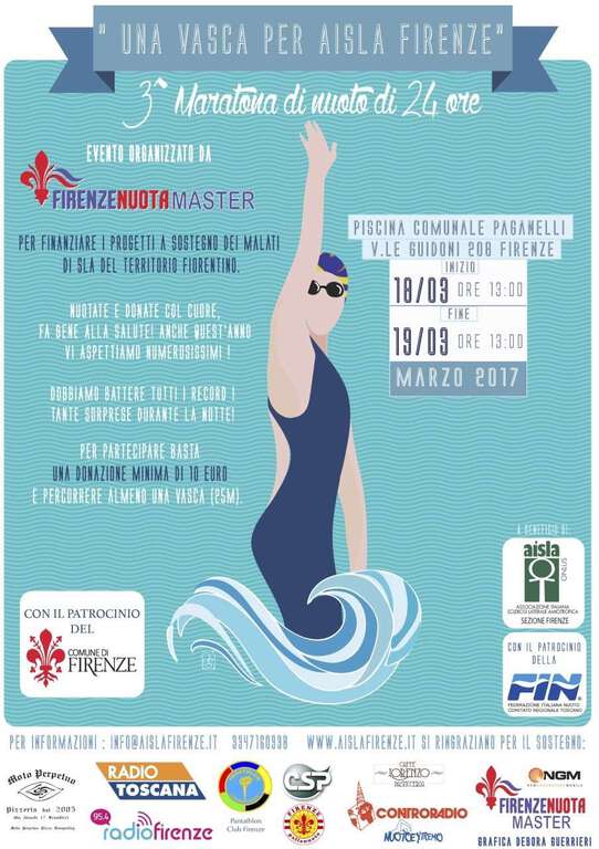 “Per il terzo anno c'impegniamo per far germogliare il seme della solidarietà. Un impegno – ha spiegato l'assessore Vannucci – importante verso l'associazione che si occupa dei malati di SLA e che lavora anche con le famiglie che hanno persone colpite da questa bruttissima malattia. E' importante avere tantissime persone dalle 13 di sabato alle 13 di domenicae l'unico risultato vero è battere il record di numero di presenze e di raccolta fondi. Quella di Aisla è un’istanza quanto mai sentita dai fiorentini, sempre pronti quando sono chiamati a raccolta per dare segnali forti. Sono sicuro che lo faranno anche in questo caso nuotando numerosissimi alla piscina Paganelli”.