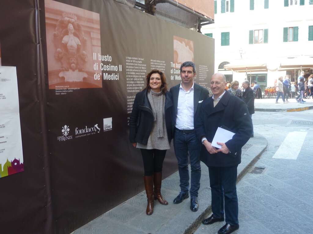 Prosegue il restauro dello stemma di Cosimo II dei Medici della Loggia del Grano. Questa mattina l’assessore all’ambiente e al decoro Alessia Bettini ha fatti visita al cantiere insieme allo sponsor Luca Seminati, uno dei soci e fondatori della società trevigiana Ideal Work srl ed a Enrico Bressan, fondatore di Fondaco, società leader in Italia nel settore della consulenza e strategia nella comunicazione associata al recupero e al restauro di opere d’arte e dei beni culturali.