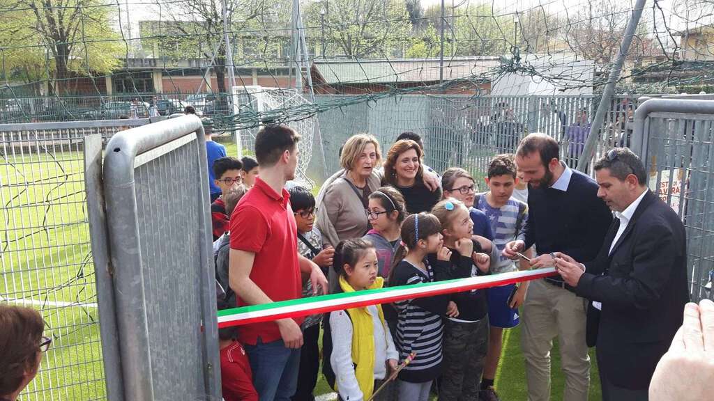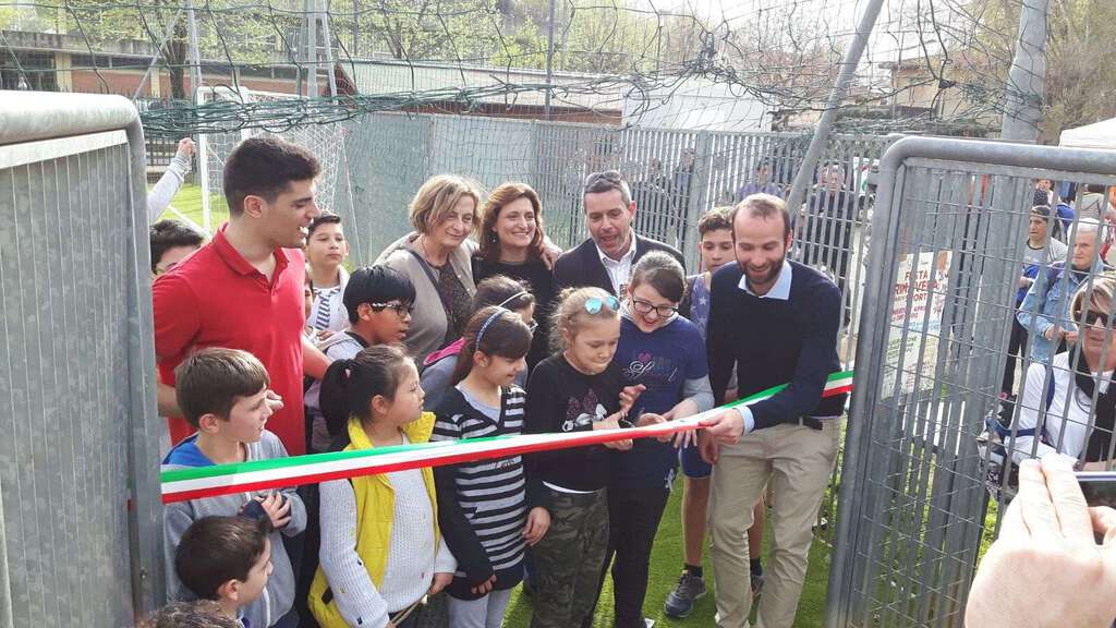 Nuovo look al campo di calcetto di piazza delle Medaglie d'Oro, oggi il taglio del nastro con gli assessori Vannucci e Bettini e il presidente Balli