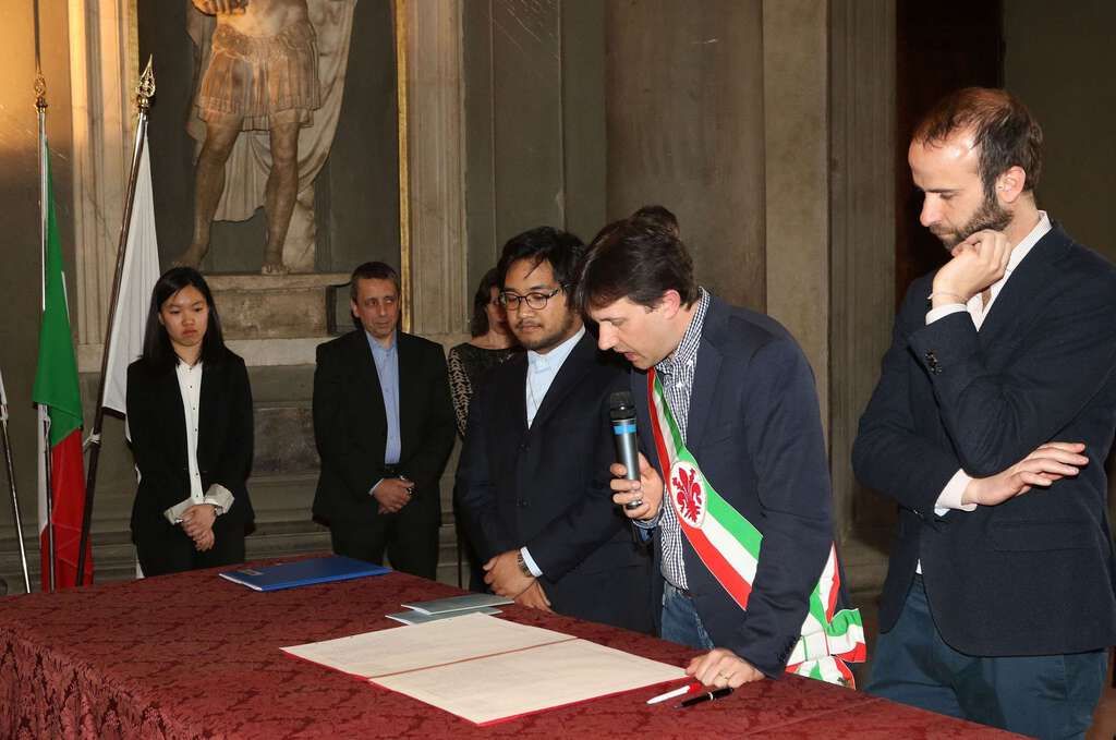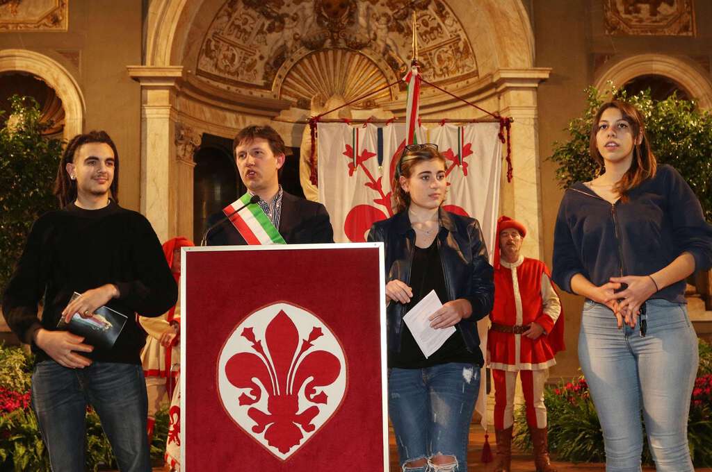 La cerimonia è stata allietata dal racconto a cura di Mus.e del significato storico e politico del Salone dei Cinquecento e dalla lettura di 3 articoli della Costituzione da parte di altrettanti giovani presenti nel Salone dei Cinquecento: Ivan ha letto l’articolo 2, Anja l’articolo 3 e Sara l’articolo 9.