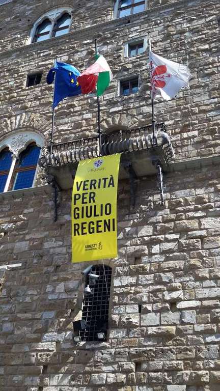 “Finalmente oggi è stato esposto lo striscione con scritto “Verità per Giulio Regeni” sulla terrazza di Palazzo Vecchio che affaccia sulla Piazza della Signoria, così come era previsto dalla risoluzione approvata all'unanimità dal Consiglio Comunale del 23 marzo scorso e proposta dalla sottoscritta e dal gruppo Firenze riparte a sinistra”.E’ soddisfatta la consigliera Miriam Amato che ha subito fotografato lo striscione appeso (vedi allegato). “Rimane alta l’indignazione per la poca chiarezza a più di due mesi dalla tragica vicenda di Regeni da parte degli inquirenti egiziani”, conclude Miriam Amato, ricordando l’appello ai fiorentini “a non andare in Egitto per turismo, così anche i singoli cittadini potranno esprimere il loro dolore e indignazione per questa vicenda”. (s.spa.)