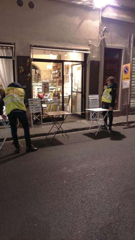 Sei i vigili impegnati nell’intervento. Due gli esercizi in Borgo La Croce per occupazione abusiva della strada con tavoli e sedie e uno anche per affissione abusiva sul muro di lavagne con l’indicazione dei prezzi dei prodotti in vendita.
