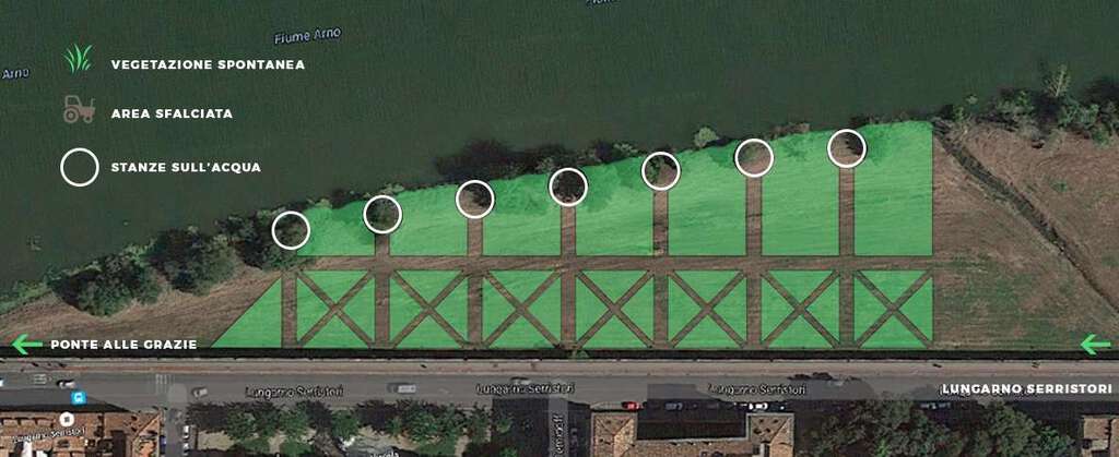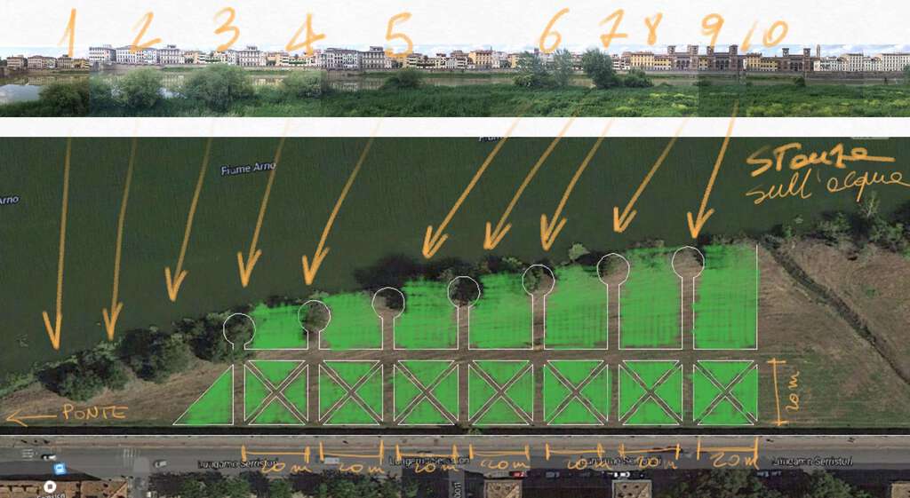 La riva sinistra del fiume sotto il Lungarno Serristori, un territorio di margine in pieno centro storico di Firenze, diventa luogo di incontro tra biodiversità e cultura grazie a un progetto di riqualificazione urbana. È così che nasce il lavoro di Studio ++ il cui obiettivo è dare risalto alla ricchezza biologica, alla diversità e al potenziale di un’area perché diventi spazio di vita quotidiana e patrimonio di tutti attraverso un intervento di public art attento agli aspetti di conservazione naturale e di biodiversità.
