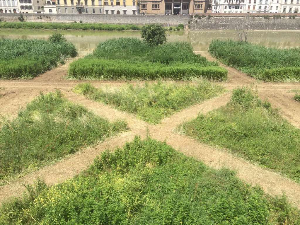 E infatti, sotto San Niccolò, su quel naturale e non pericoloso accumulo di depositi fluviali conosciuto ormai come la spiaggia della città, al Consorzio quest’anno è stato chiesto di tagliare l’erba “a strisce”. Non si tratta di un lavoro fatto male o “tirato via”, come potrebbe pensare un distratto osservatore fiorentino, bensì di un vero e proprio progetto artistico.