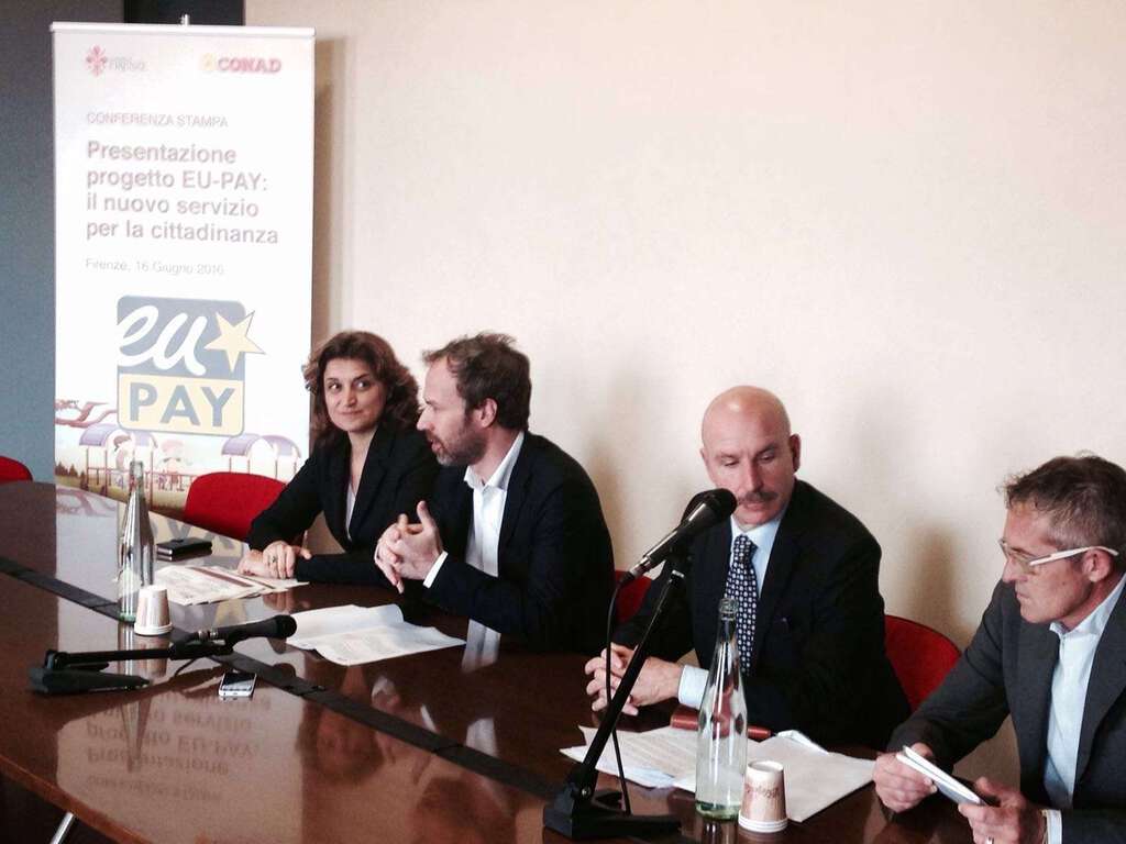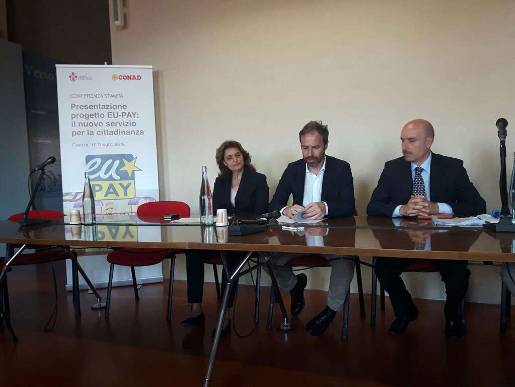 Pagare i bollettini comunali direttamente alla cassa del supermercato, spendendo 10 centesimi in meno di commissione e contribuendo a riqualificare i giardini della città per bambini e famiglie. È Eu-Pay il nuovo sistema di pagamento per i cittadini adottato dal Comune di Firenze con Conad del Tirreno, già attivo per i servizi scolastici. Il progetto è stato presentato oggi dall’assessore all’Innovazione Lorenzo Perra, dall’assessore all’Ambiente Alessia Bettini e dal direttore dei Sistemi informativi di Conad del Tirreno Maurizio Barsacchi. Presenti, tra gli altri, i presidenti dei Quartieri 3 e 5 Alfredo Esposito e Cristiano Balli.
