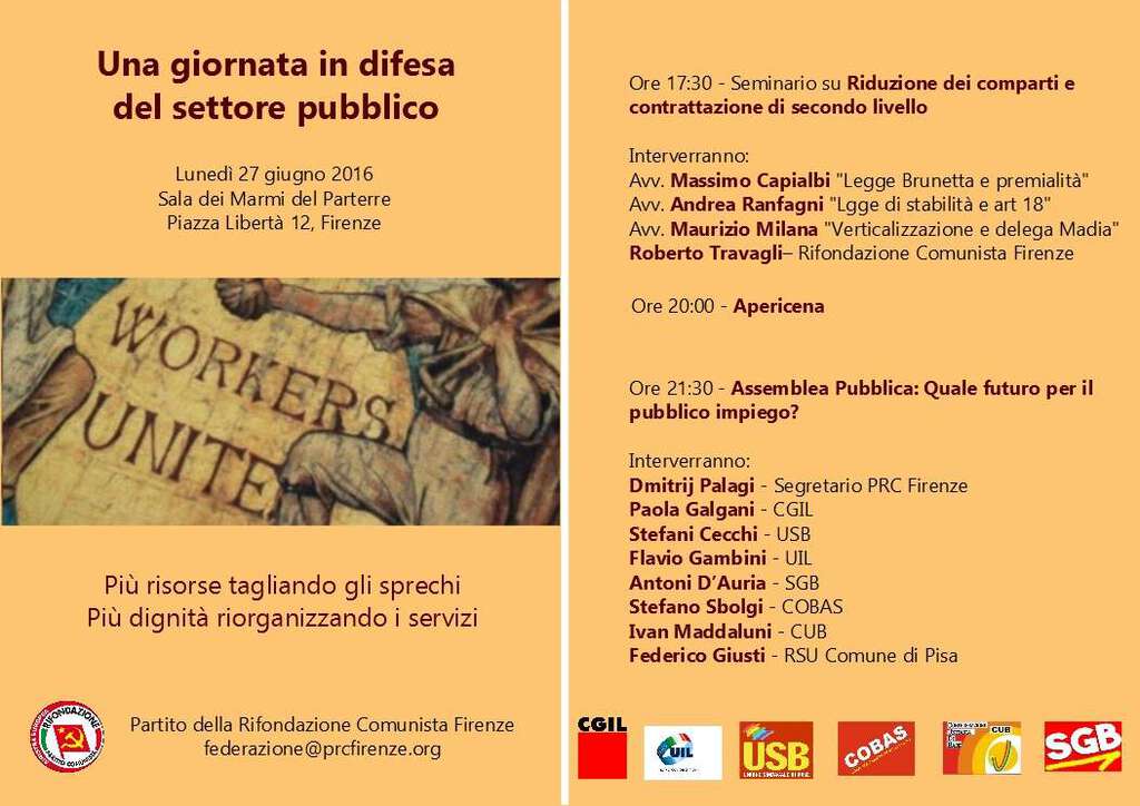 Per questo motivo il PRC Firenze ha inviato a tutti i sindaci e ai consigli comunali della Provincia la richiesta ufficiale di modificare i regolamenti comunali al fine di prevedere esplicitamente l’inserimento della “clausola sociale” nella gestione degli appalti e le eventuali penalità previste per le aziende che non si dovessero rifare al regolamento aggiornato. Come già affermato, siamo ben consapevoli del fatto che l’attuale normativa sul lavoro nel nostro Paese costituisca uno dei maggiori problemi con cui milioni di persone sono costrette a confrontarsi ogni giorno, cercando di districarsi in una situazione di insicurezza e scarsità di diritti e possibilità. Ma allo stesso tempo, speriamo che questo tentativo, nel caso ci fossero riscontri da parte delle amministrazioni locali, porti al miglioramento delle condizioni di quei lavoratori che, tra un cambio di appalto e l’altro, ad oggi vivono sul filo del rasoio con l’angoscia per ciò che potrebbe riservare loro il futuro.