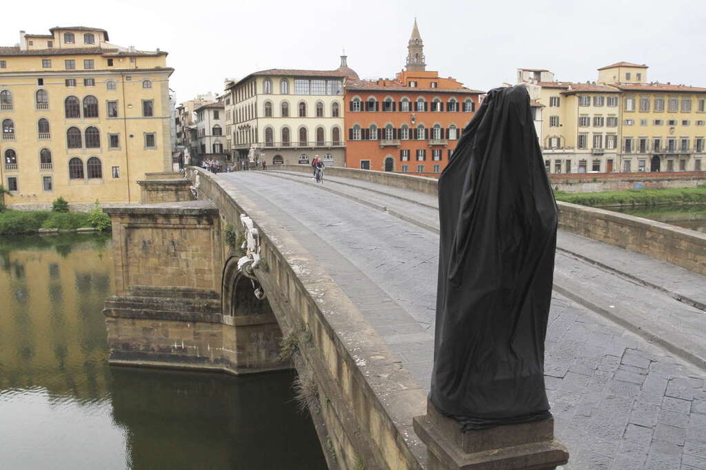 La statua della Primavera sul Ponte Santa Trinita a lutto contro i terroristi dell'Isis