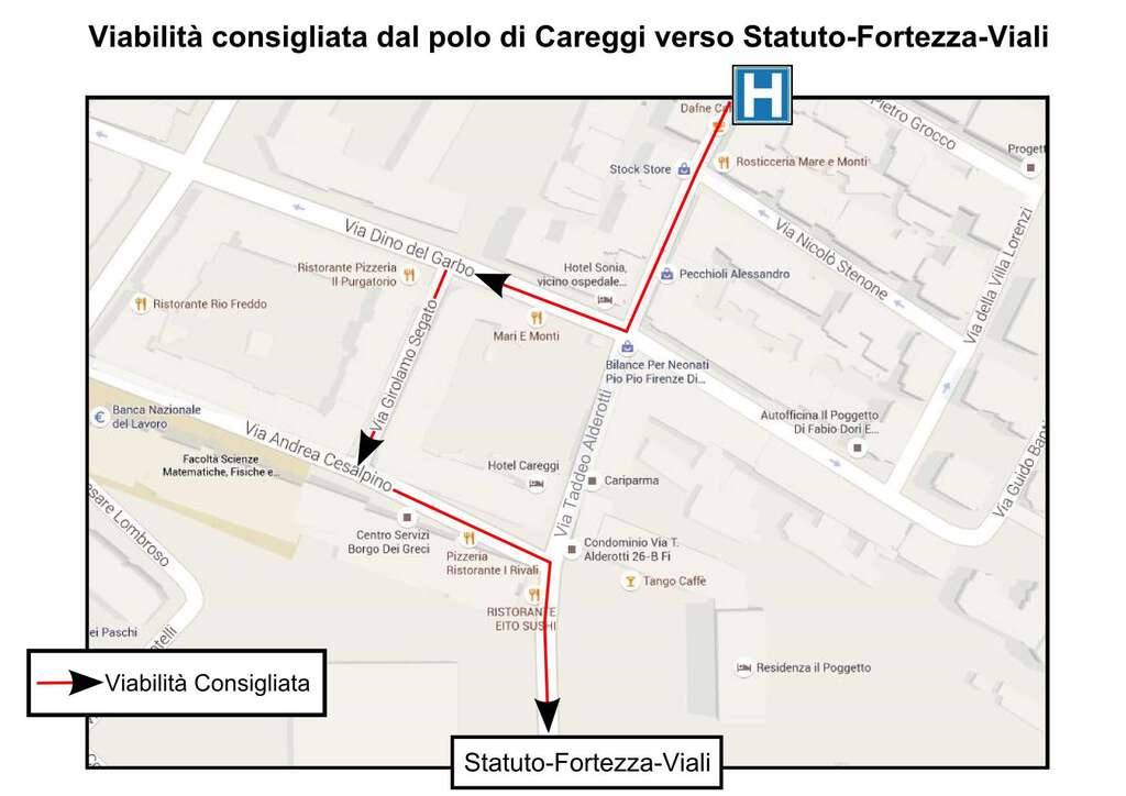 IN ALLEGATO LA MAPPA DELLA VIABILITA' ALTERNATIVA IN VIA ALDEROTTI E IL PERCORSO CONSIGLIATO VERSO STATUTO E VIALI