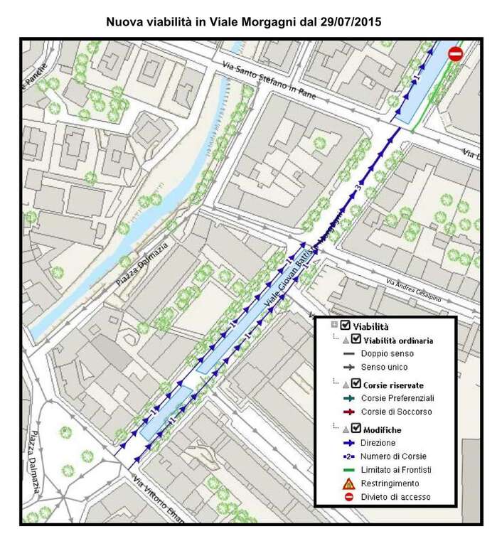Domani, mercoledì 29 luglio, scatterà l’attivazione del cantiere della tramvia a centro strada nel tratto iniziale di viale Morgagni. Previsto a metà luglio, poi rinviato nella seconda metà di agosto a seguito dell’intervento di riparazione urgente della fognatura nel tratto finale del viale Morgagni (con conseguente chiusura da via Dino del Garbo a largo Brambilla), è stato riprogrammato con alcune modiche per domani. Rispetto all’ipotesi iniziale che prevedeva lo spostamento del cantiere a centro strada nell’intero tratto piazza Dalmazia-via Stefano in Pane, l’intervento adesso è articolato su due fasi successivi in modo da iniziare le lavorazioni mentre è ancora in corso la riparazione della fognatura.