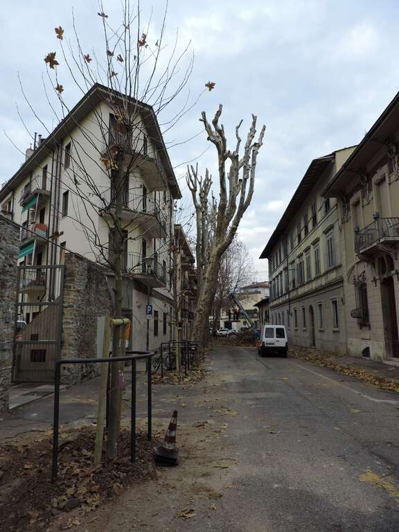 Due platani sono stati abbattuti in via Giano della Bella, in Oltrarno. Uno era affetto da ‘cancro colorato’ e pericoloso, l’altro era contiguo a quello malato e la sua eliminazione è stata prescritta dal servizio fitosanitario regionale.