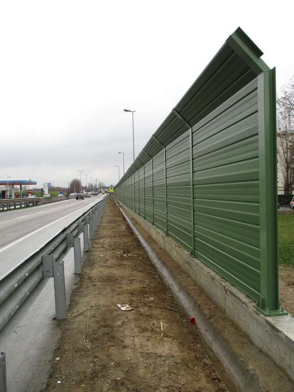 La ‘barriera acustica fonoassorbente’ è stata montata nelle vicinanze della rampa d’accesso al Ponte, ha un’altezza di tre metri rispetto al livello stradale ed è lunga 150 metri. I pannelli, in lamiera in alluminio e fibra minerale, sono sostenuti da una struttura portante in acciaio.