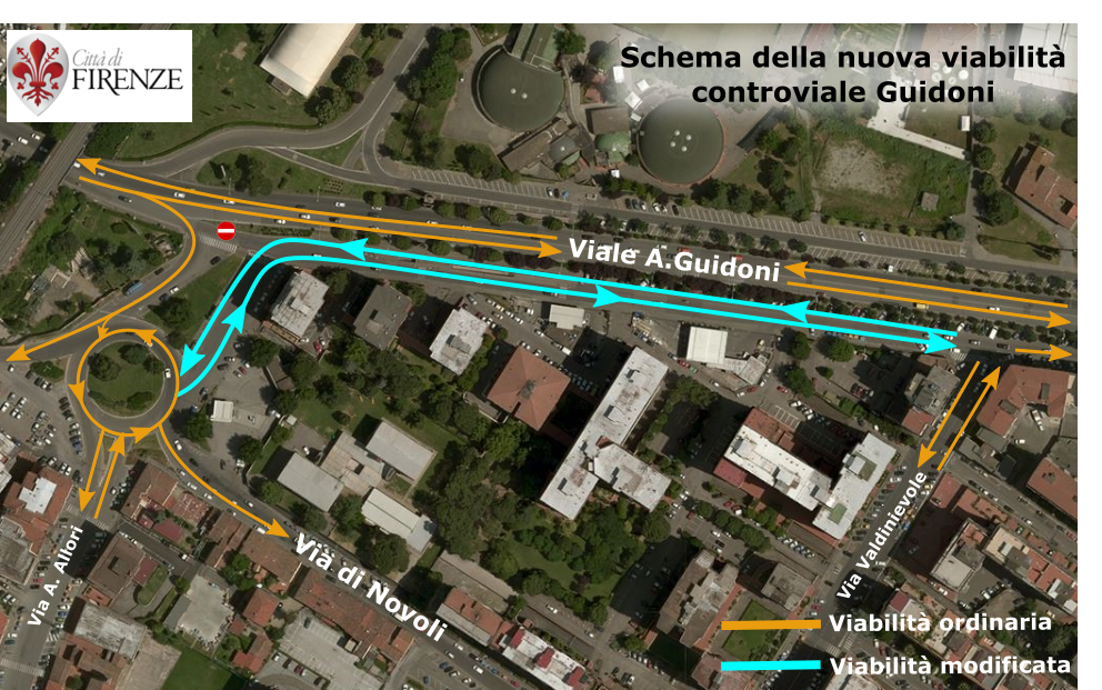 Con la nuova viabilità del controviale Guidoni, i veicoli provenienti da Novoli e diretti verso via Pratese (Osmannoro) dovranno quindi utilizzare un diverso percorso alternativo, ovvero: via di Novoli-via Valdinievole-controviale Guidoni (tratto doppio senso)-via Allori-via Garfagnana-via di Carraia. (mf)