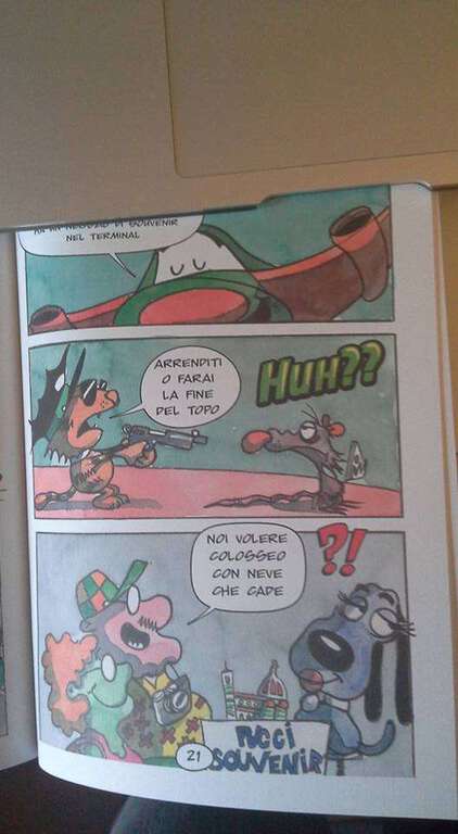 Il fumetto è un’offesa all’intelligenza umana e al buon gusto, i professori universitari vengono rappresentati come gatti che cercano di ipnotizzare i topi, i turisti arrivano a Firenza (invece che a Firenze) e vi cercano il Colosseo, l’allegro aeroplano vola sopra il centro di Firenze (quando lo stesso Ministero per il momento non lo prevede). Seguono tutta una serie di informazioni sbagliate, dagli studi approfonditi che giustificherebbero il progetto secondo “Pucci”, quando anche i tecnici della Regione hanno trovato talmente tante criticità da non poter dare nemmeno un parere, ai nuovi posti di lavoro che si creerebbero quando per ora si ha notizia soltanto di contratti a tempo determinato non rinnovati e bandi di selezione internazionale per il personale senza vantaggi per i lavoratori residenti a Firenze.