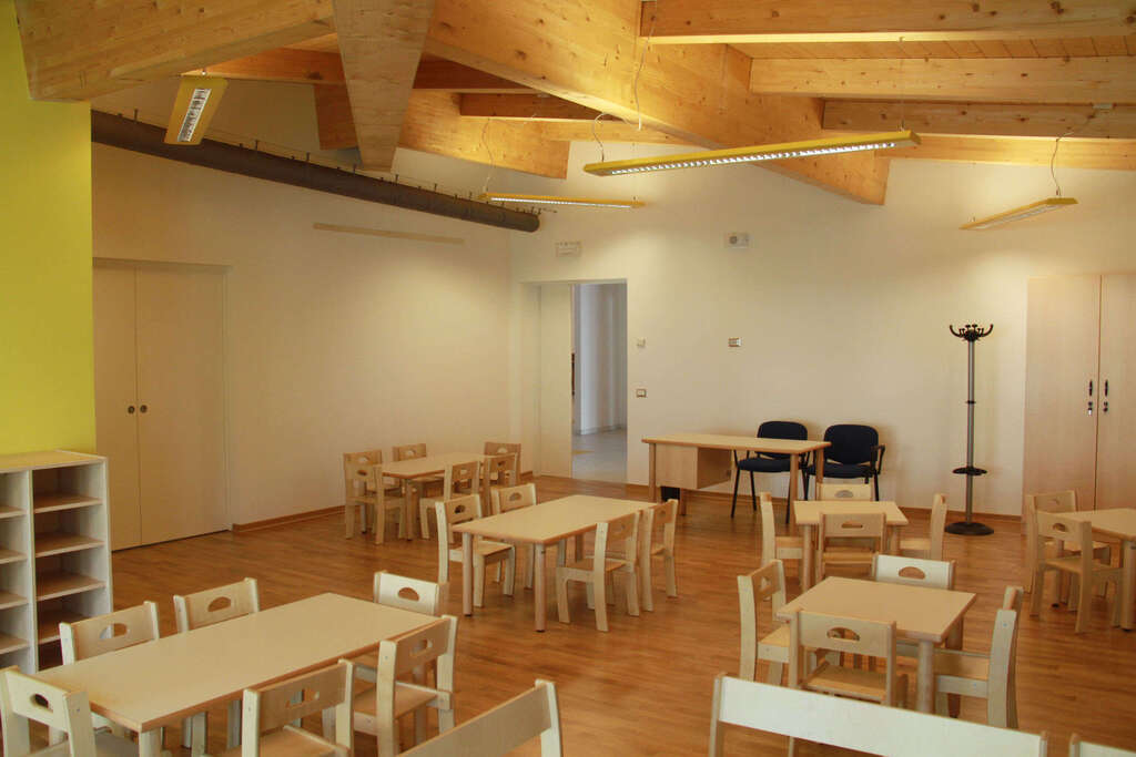 L’edificio si sviluppa prevalentemente nella zona già occupata dalla struttura demolita nel luglio 2012 (1.570 metri quadrati di fabbricato) e successivamente bonificata dall’amianto, anche per salvaguardare il giardino e i suoi alberi, e ospiterà sei sezioni per un totale di 150 bambini. I lavori sono costati due milioni e 600 mila euro.