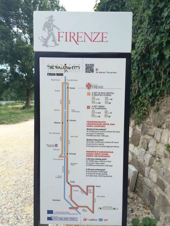 Per fornire indicazioni sui percorsi e le modalità più appropriate di fruizione è stato realizzato un sistema di segnaletica installato lungo i percorsi e adattato alle esigenze delle diverse fasce di utenza con indicazioni di tipo medico-sanitario e sportivo. Sono 19 le stele installate in città nell’area a valle dell’Arno (Parco delle Cascine e dell’Argingrosso, Peretola, Quaracchi, Brozzi, Mantignano, Ugnano, San Bartolo a Cintoia) e 7 all’interno del Parco dell’Albereta.