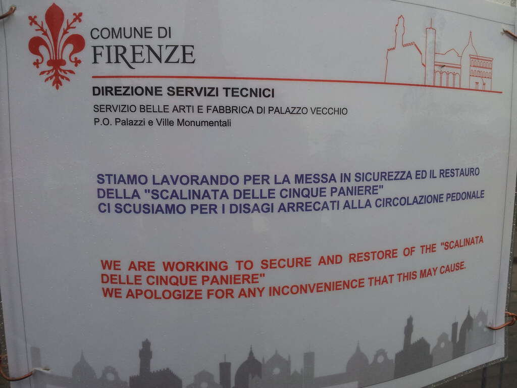 “La scalinata più bella del mondo, quella che dal Piazzale Michelangelo volge verso il Ponte Vecchio, è stata recintata e resa impraticabile per lavori di messa in sicurezza. Spero che tutto ciò sia dovuto a motivi davvero gravissimi che avrebbero messo in pericolo l'incolumità delle persone perché sennò è difficile trovare una logica spiegazione ad un atto cosi inappropriato, in particolare nel periodo pasquale che vede uno dei momenti di maggior afflusso turistico di tutto l'anno.