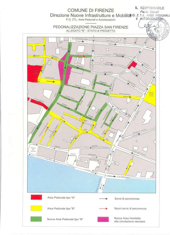 La vicenda delle attività degli ambulanti è lunga e mai risolta in maniera definitiva; si trovavano prima sotto il loggiato degli Uffizi, poi in via dei Gondi ed infine sono state spostate in piazza San Firenze: si colga l’occasione della pedonalizzazione per trovare una collocazione definitiva ed adeguata alle esigenze delle attività”.