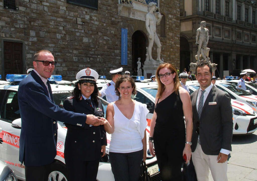 Alla consegna simbolica delle chiavi hanno partecipato la comandante della Polizia Municipale Antonella Manzione, l’assessore all’ambiente Caterina Biti e Lorenzo Matthias direttore Relazione Esterne di Toyota Motor Italia.