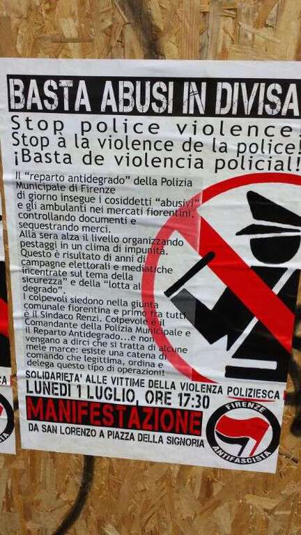 “Il volantino che annuncia una manifestazione per il 1 luglio da San Lorenzo a piazza della Signoria contiene toni offensivi e minacciosi contro il reparto antidegrado della Polizia Municipale e contro le Forze dell’Ordine. Presenteremo un esposto in Procura perché ne siano identificati gli autori, e gli organizzatori della manifestazione che non deve e non può essere autorizzata: siamo davanti a qualcosa di inaccettabile per ogni cittadino onesto di Firenze”. Questo il commento del capogruppo FdI Stefano Alessandri e del collega PdL Marco Stella.