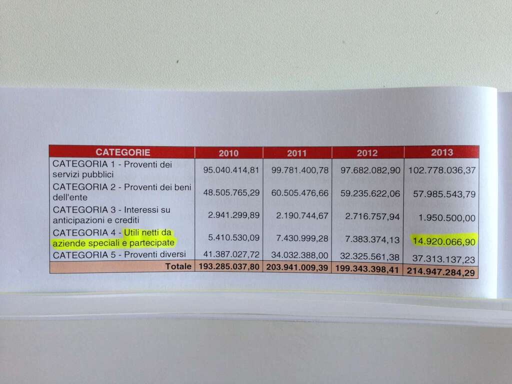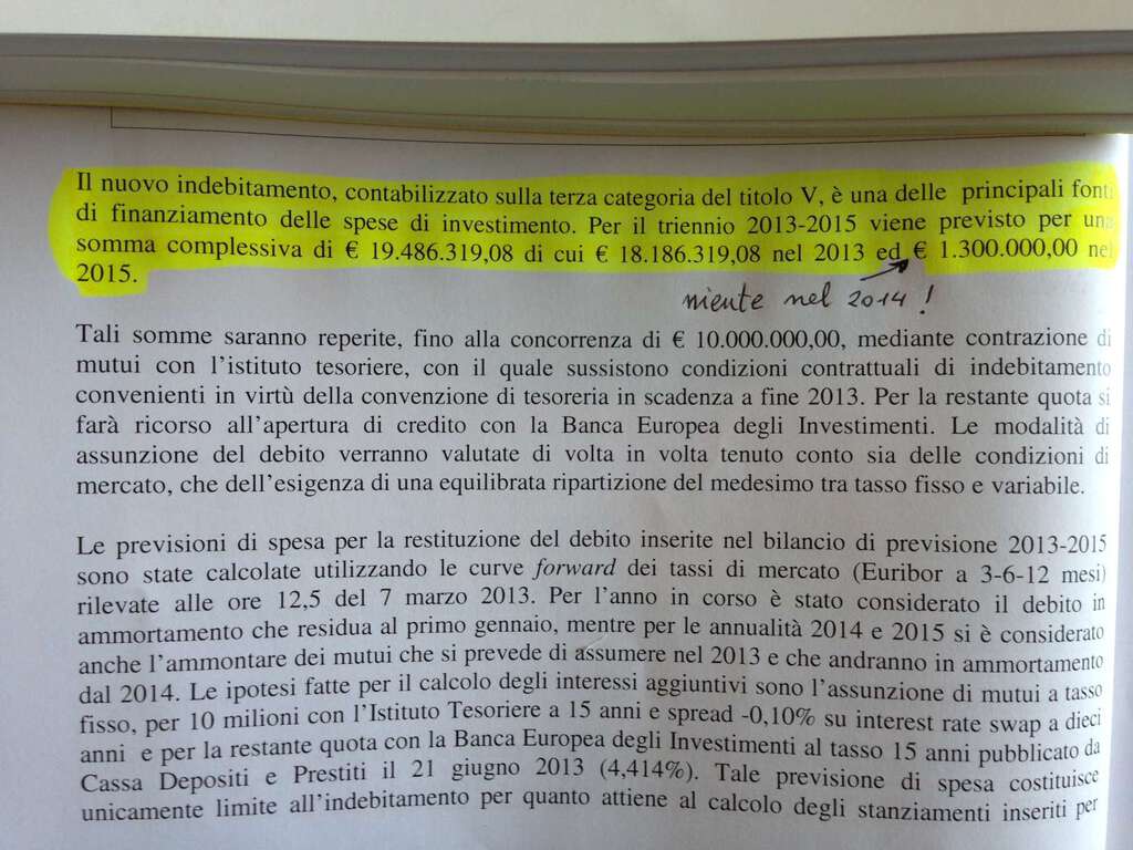 Terza perla contabile è l’altra impennata impossibile nei trasferimenti da privati. Di nuovo, dopo 3 anni in crollo (14, 10 e poi 8 milioni) ecco il miracolo che supera 58 milioni! Spiega anche che sono quelli che dovrebbero arrivare da RFI per gli accordi sulle Ferrovie. Ma chi può credergli? Siamo a Luglio e di quei soldi non abbiamo visto arrivare un centesimo! Né i “chiari di luna” fanno ben sperare … Infine “indebitamento feroce” e “drenaggio completo” di ogni risorsa futura completano la caratterizzazione negativa di questo bilancio. Sull’indebitamento (vedi Foto3) si ammette candidamente di aver sfinito la città e che dunque il prossimo sindaco nel 2014 avrà le mani legate (zero investimenti con quella forma di finanziamento, che è l’unica sicura). Sul drenaggio, invece, raschia il ricco barile di Toscana Energia imponendo la distribuzione delle Riserve (nate per investire sulla rete) e prelevando a mo’ di bancomat anche i quasi 6 milioni di spettanza del Comune unico motivo della incredibile crescita degli introiti da partecipate (vedi Foto4)”.