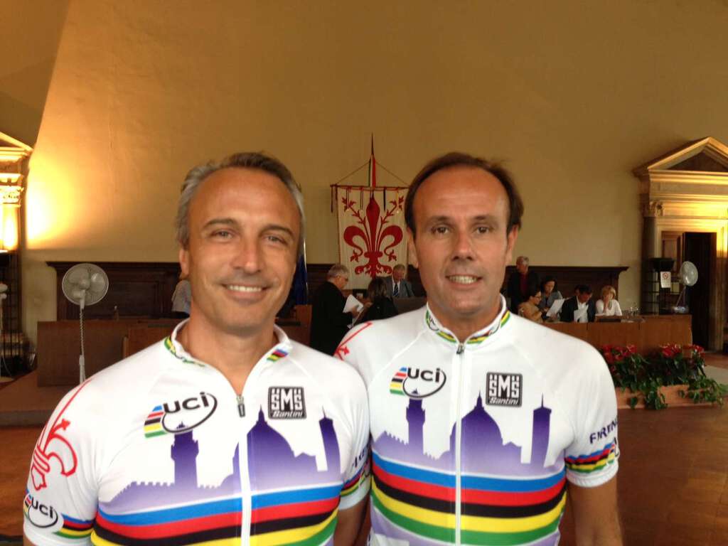 Hanno indossato in aula la maglia ufficiale dei prossimi Mondiali di Ciclismo in apertura della seduta di oggi del Consiglio comunale. I consiglieri Massimo Sabatini (Lista Galli) e Mario Tenerani (PdL) hanno voluto così richiamare l’attenzione di organizzatori ed amministrazioni locali sulla necessità di coinvolgere al massimo la cittadinanza sull’evento che prenderà il via il 22 settembre.