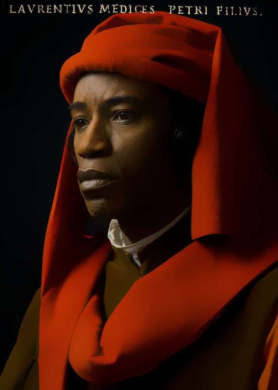 La mostra propone immagini e video di persone con visti regolari o carte di soggiorno, con permessi di lavoro, famiglia e che pagano le tasse allo Stato. Sono artisti americani, stilisti giapponesi, astrofisici cileni, cantanti di blues filippini, mediatori culturali yemeniti, soprani dell’opera cinesi, “Rhodes Scholars” colombiani ma anche semplici operai. Agli Uffizi, a Palazzo Pitti, e in altri musei fiorentini c’è un patrimonio di capolavori. Spesso si tratta di ritratti di personaggi della tradizione rinascimentale fiorentina. Grazie all’obiettivo di Mark Abouzeid, agli abiti cuciti da Diana Ferri e al make up di Paolo Manciocchi, questi ritratti diventano contemporanei: invariata l’iconografia classica, vengono reinterpretati da immigrati che a Firenze vivono, lavorano, e producono cultura. Così Lorenzo De' Medici diventa il rapper nero Dre Love, che viene dalla moda e ha lavorato con molti grandi della musica italiana, da Irene Grandi agli Almamegretta. Savonarola avrà il volto di Mihaly Gera Bela, ebreo ungherese che parla quattro lingue e a Firenze gestisce il ristorante Borgo Antico. Pietro Aretino ritratto da Tiziano avrà la faccia di Antonio Roldan Villafan, ex calciatore messicano e couchsurfer che in tre mesi ha ospitato a Firenze oltre cento stranieri. Lo stesso Mark Abouzeid diventerà Amerigo Vespucci, mentre due gemelle russe che arrivano dalla scuola internazionale interpreteranno il Ritratto di donna del Pollaiolo. E poi un dj italo giapponese, un tenore argentino, un ballerino albanese, un imprenditore cinese, uno sportivo senegalese e altri stranieri che a Firenze vivono e portano cultura, interpreteranno Vasari, Pico della Mirandola, Isabella dei Medici, Andrea del Sarto, Baccio Bandinelli, Caterina dei Medici.