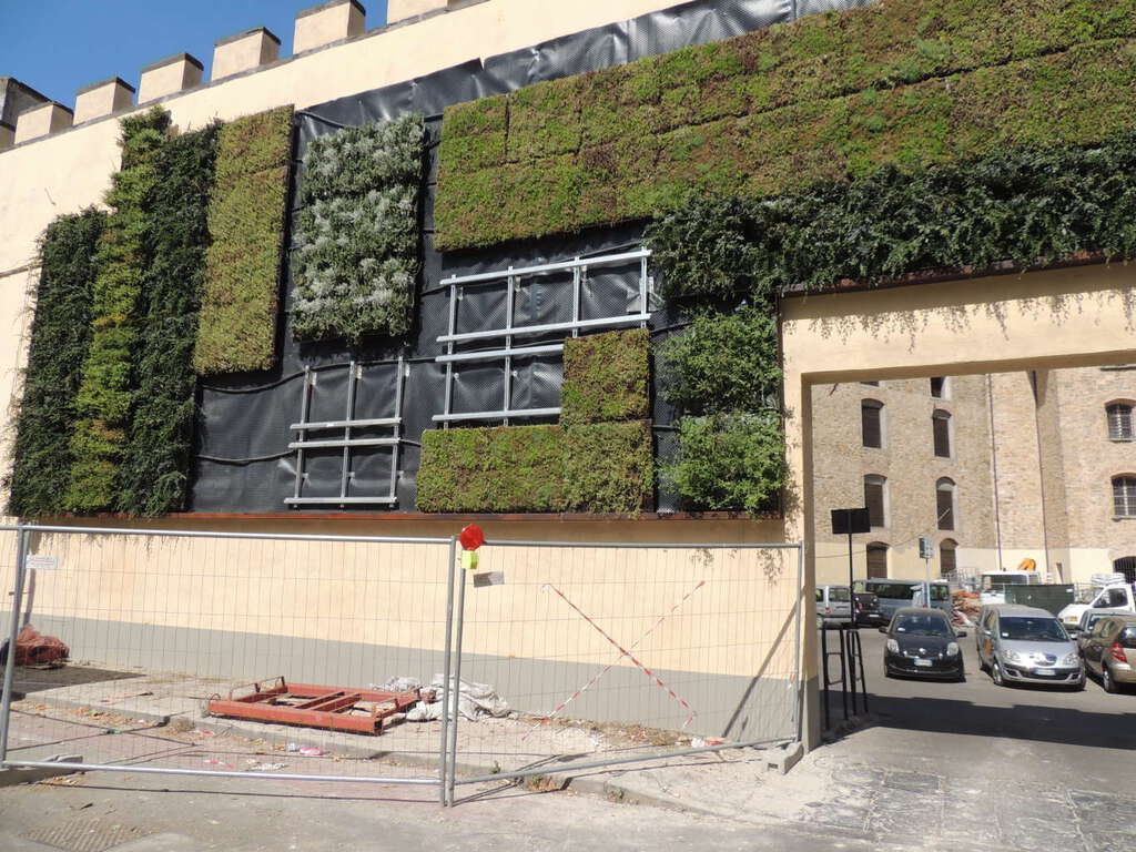 Ancora i lavori non sono terminati, ma ieri hanno tolto i ponteggi: ed ora è evidente come la lunga parete delle Murate che si affaccia sul viale Giovane Italia si stia rapidamente trasformando in un grande giardino verticale fatto di foglie e di fiori. Sul muro di circa 70 metri tra via dell’Agnolo e via Ghibellina sono già stati montati i pannelli modulari dove si alterneranno geometrie e composizioni di un enorme ‘quadro verde’ alto oltre sei metri che conterrà zone di prato, piante e fiori, secondo un progetto studiato dai tecnici della Direzione Ambiente prendendo spunto anche da analoghe esperienze all’estero.