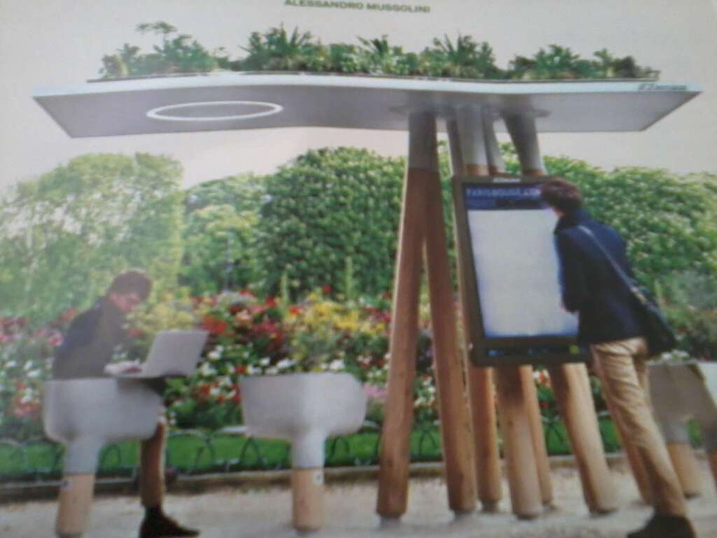 “Jc Decaux, colosso francese della pubblicità su strada e un designer hanno vinto un concorso indetto dalla municipalità di Parigi per realizzare un arredo urbano dove collegarsi a internet. Il progetto si chiama ‘Escale numerique’, ed è stato paragonato alle fontane cittadine delXIX secolo che fornivano acqua potabile: oggi la risorsa da erogare è la connessione wireless.