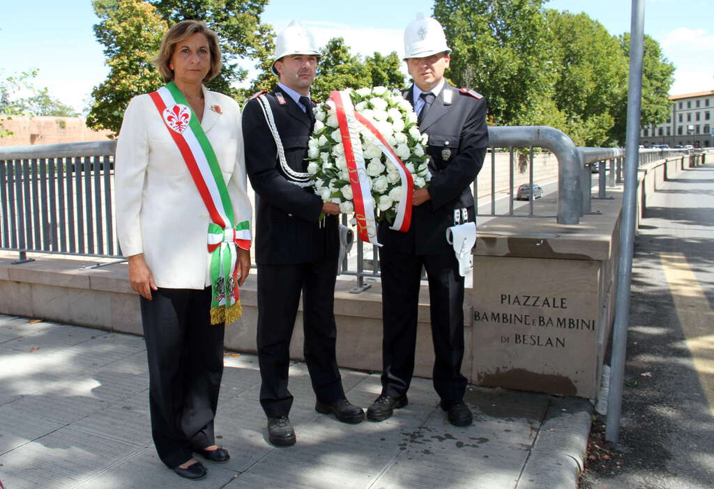 Un cuscino di fiori nel piazzale intitolato alle “Bambine e ai bambini di Beslan”, alla Fortezza da Basso. Lo ha deposto questa mattina l'assessore all'educazione Rosa Maria Di Giorgi nel corso della cerimonia per commemorare la strage, avvenuta otto anni fa in una scuola della città del Caucaso russo: 334 le vittime tra cui 186 bambini. “E' stata una carneficina che ha choccato il monto intero – ricorda l’assessore Di Giorgi -: la sola idea che 186 bambini siano stati massacrati in una scuola nel corso di una guerra cruenta, ma in cui comunque dovrebbero essere sempre rispettati i diritti umani e soprattutto quelli di bambini, rende questa tragedia ancor più crudele”