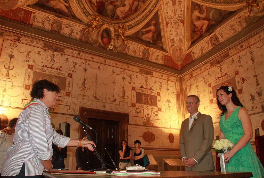 Primo sì, bilingue, nella Sala di Lorenzo a Palazzo Vecchio, una delle nuove location per le nozze civili volute dall’amministrazione da pochi mesi. Dopo il Giardino delle Rose, dove il primo matrimonio ‘en plein air’ è stato celebrato lo scorso luglio, oggi pomeriggio è stata la volta della celebre sala affrescata sotto la direzione del Vasari vicino al Salone dei Cinquecento per celebrare la vita, gli incontri e le imprese di Lorenzo il Magnifico. A giurarsi amore eterno una giovane coppia straniera, innamorati della Toscana e di Firenze tanto da scegliere la città per il loro giorno più bello. A celebrare le nozze l’assessore Stefania Saccardi.
