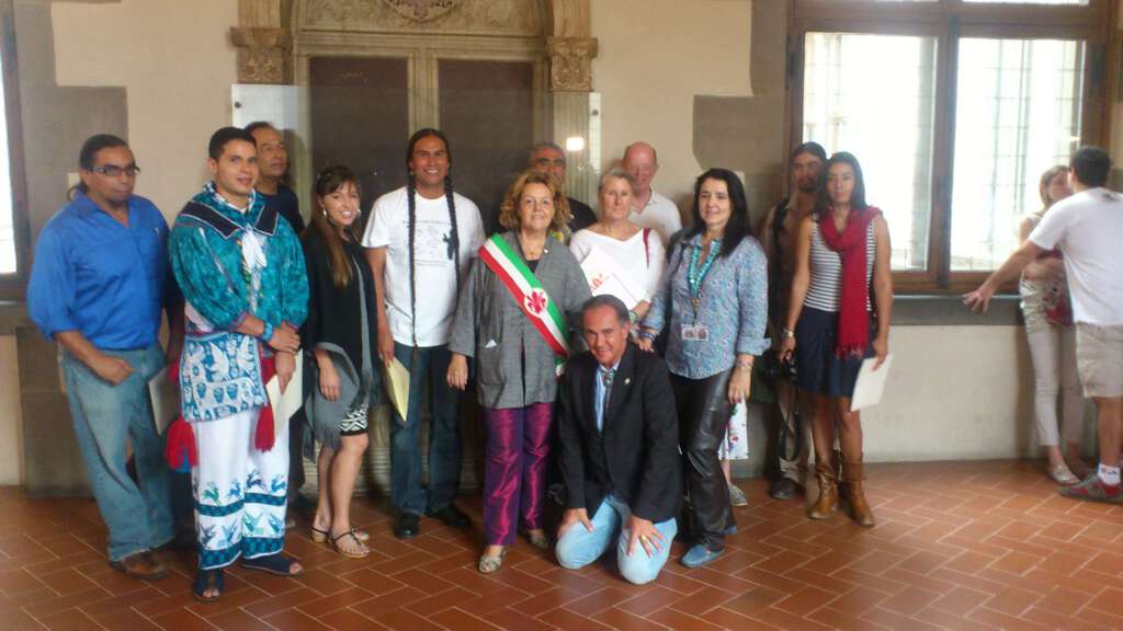 Questa mattina una delegazione dell’ associazione culturale Wambli Gleska, guidata da Alessandro Martire composta una decina di donne e uomini Nativi,oltre a due rappresentanti la famiglia scozzese Sinclair, Capo Clan Malcom Sinclair e Signora, è stata accolta dalla presidente della Commissione Pace, diritti umani, Susanna Agostini. L’associazione Wambi Gleska da 18 anni opera con le istituzioni italiane ed Europee, per il riconoscimento dei diritti inviolabili dei popoli indigeni americani. L’incontro di stamani rientra nel programma del rinnovo del patto di amicizia della Provincia di Firenze del quale faceva parte la mostra etnografica sui sioux, allestita fino a ieri nella Galleria delle Carrozze, di Palazzo Medici Riccardi.
