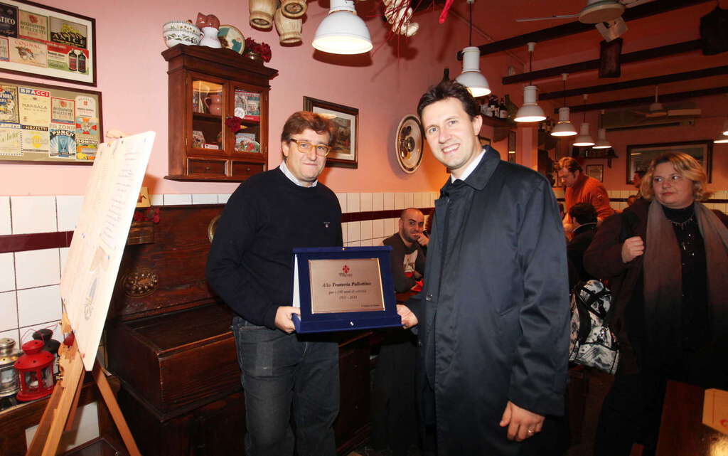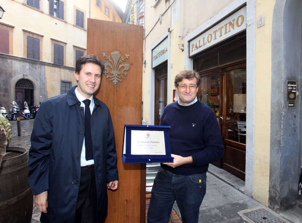 La trattoria "Pallottino", antico esercizio storico nel cuore della città, ha ricevuto il riconoscimento dell’Amministrazione Comunale per i cento anni di attività. Oggi il vicesindaco Dario Nardella ha consegnato la targa celebrativa del Comune al titolare della trattoria, Giovanni Diana, che oggi porta avanti un’attività nata in via Isola delle Stinche agli inizi del 900 come "Mescita Amedeo Pesci", una delle prime mescite della zona. Nel dopoguerra l'attività si trasformò in trattoria ed ancora oggi mantiene l’originale pavimento in sanpietrino, le piastrelle alle pareti e il carattere ‘casalingo’ ed autenticamente popolare. Grazie alla vicinanza del Teatro Verdi, Pallottino è stato frequentata da artisti, attori e musicisti: tra loro Bocelli, Zeffirelli, Pollini, Zucchero, Montesano, Renato Zero e Zubin Mehta, che aveva l’abitudine di portare il suo peperoncino personale. Lo scrittore David Leavitt, che ha frequentato la trattoria nel periodo trascorso a Firenze, l’ha inserita in un suo romanzo.(ag)
