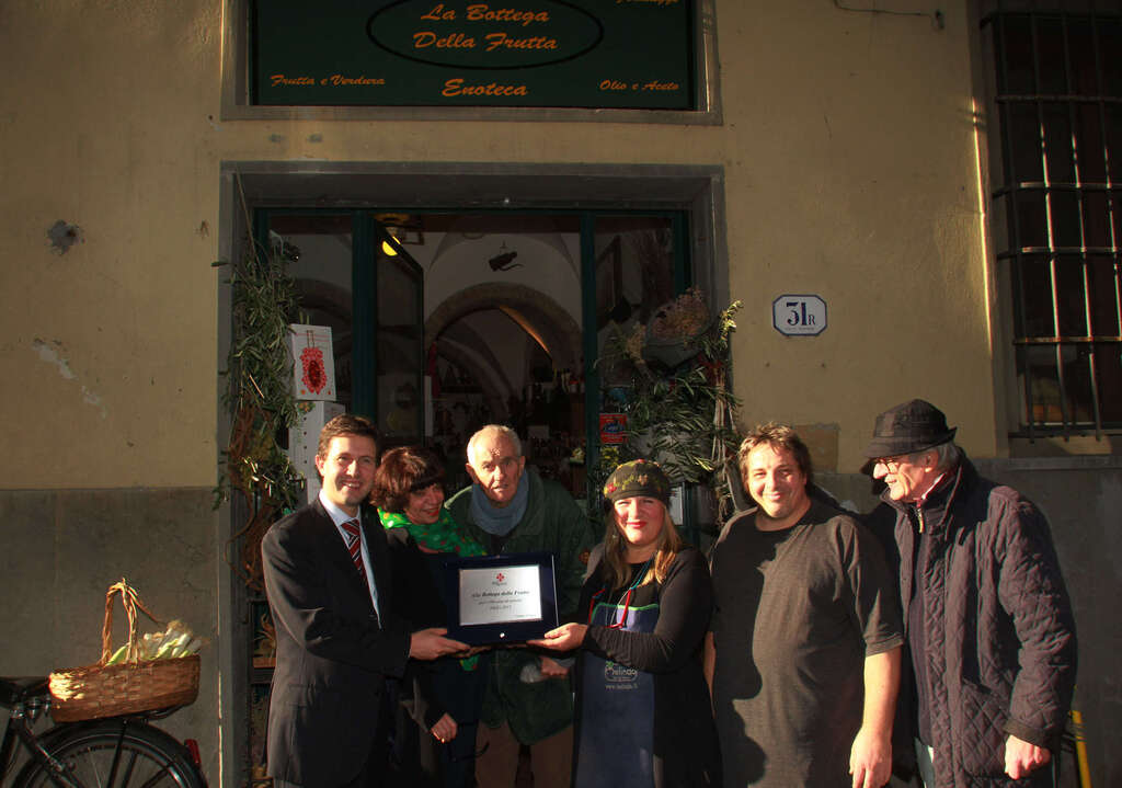 Un’altra storica attività commerciale fiorentina compie cent’anni: è la 'Bottega della frutta' di via dei Federighi, nel cuore del centro storico, che oggi ha ricevuto il riconoscimento dell’amministrazione comunale per questo prestigioso traguardo. E’ stato il vicesindaco Dario Nardella a consegnare la targa agli attuali gestori, Elisabetta e Francesco Leti, che nel ’91 hanno rilevato l’attività dai fratelli Pietro e Giuseppe Vermigli, anche loro presenti alla piccola cerimonia e figli del fondatore del negozio.